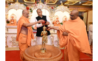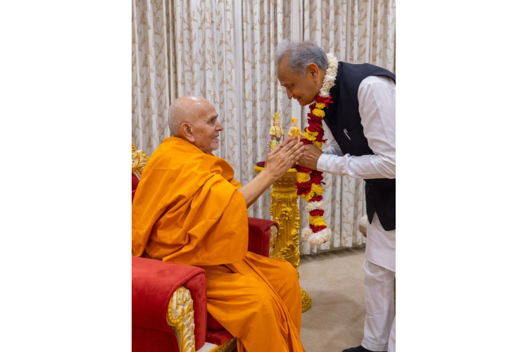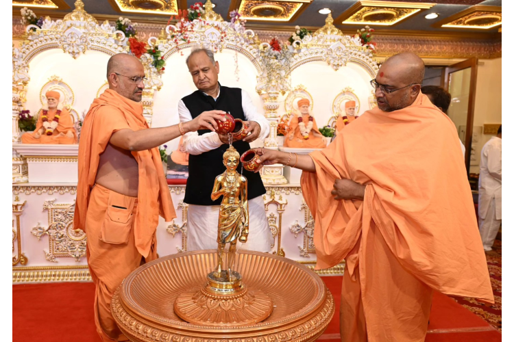 जयपुर के अक्षरधाम मंदिर पहुंचकर भगवान स्वामीनारायण के दर्शन कर पूजा की।