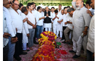 पूर्व मंत्री स्वर्गीय श्री भरत सिंह कुंदनपुर के पार्थिव देह पर पुष्प चक्र अर्पित किए