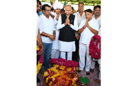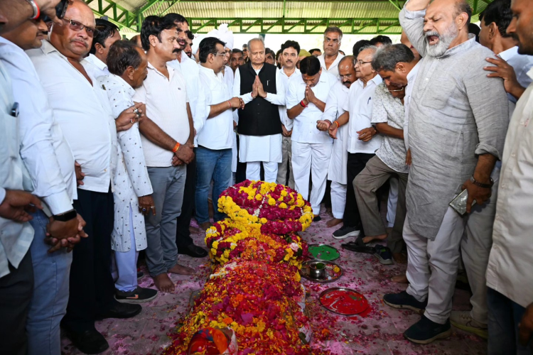पूर्व मंत्री स्वर्गीय श्री भरत सिंह कुंदनपुर के पार्थिव देह पर पुष्प चक्र अर्पित किए