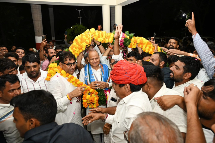 सर्किट हाउस, भीलवाड़ा पहुंचने पर कांग्रेस कार्यकर्ताओं ने स्वागत-सत्कार किया।